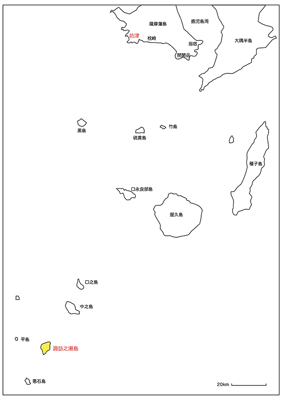 鹿児島県江戸時代以前自然災害史料集成大意より 諏訪之瀬島と坊津までの全体図